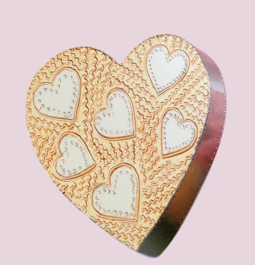 Coller les coeurs argent et avec un stylet pointu les contourner sur l'endroit sans trop appuyer.