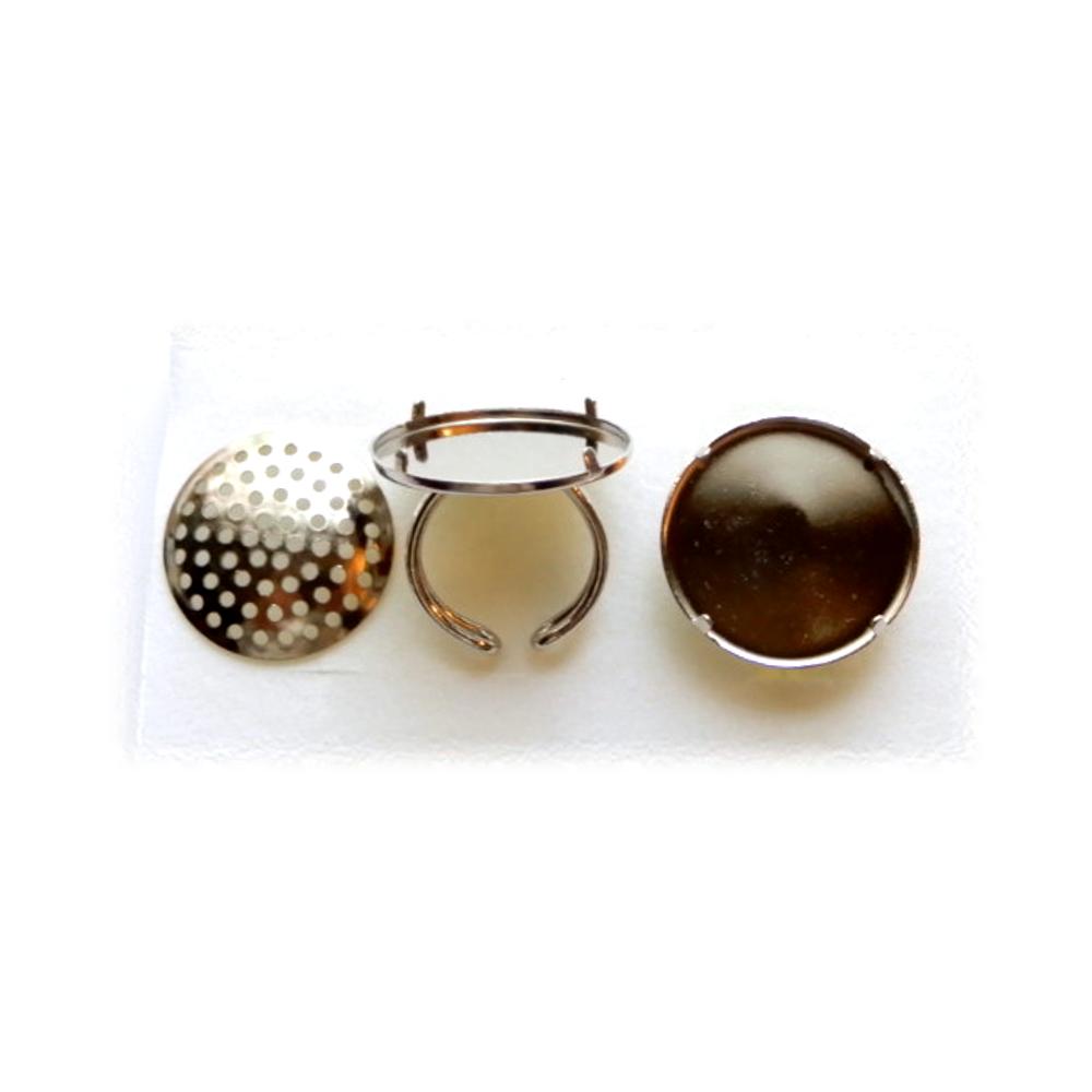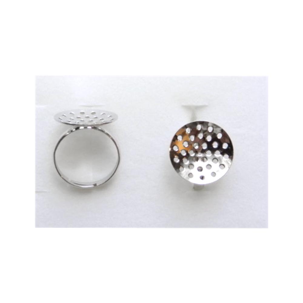 Bague réglable - Plateau rond avec tamis - 24 mm - Rhodium - En vrac - 2 pièces