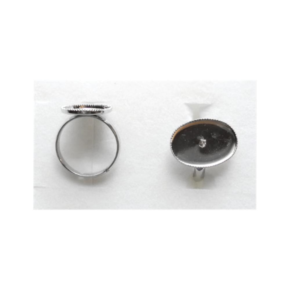 Bague réglable - Plateau ovale avec rebord cranté - 18 x 13 mm - Rhodium - En vrac - 5 pièces