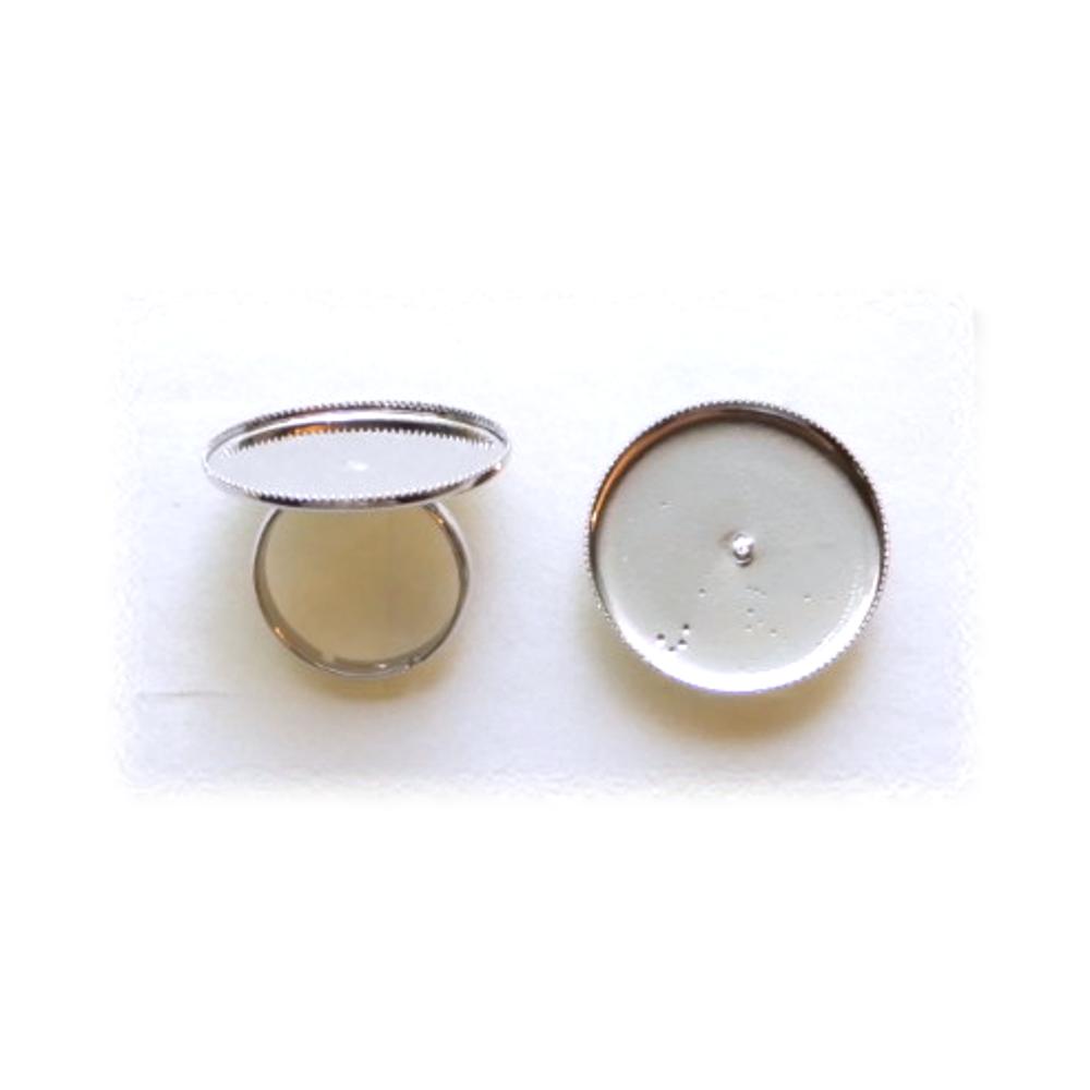 Bague réglable - Plateau rond avec 4 picots pour sertir - 24 mm - Rhodium - En vrac - 2 pièces