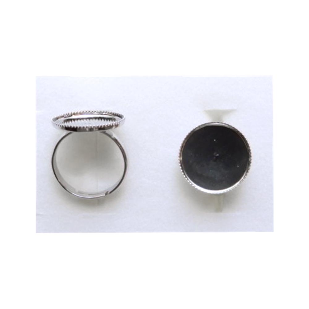 Bague réglable - Plateau rond avec rebord cranté - 16 mm - Rhodium - En vrac - 5 pièces