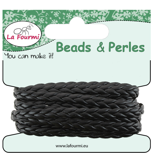 Cordon en coton ciré tressé plat - 5 mm x 3 m - Noir
