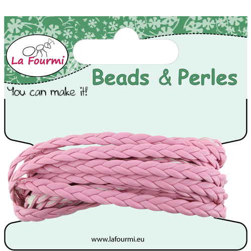 Cordon en coton ciré tressé plat - 5 mm x 3 m - Rose