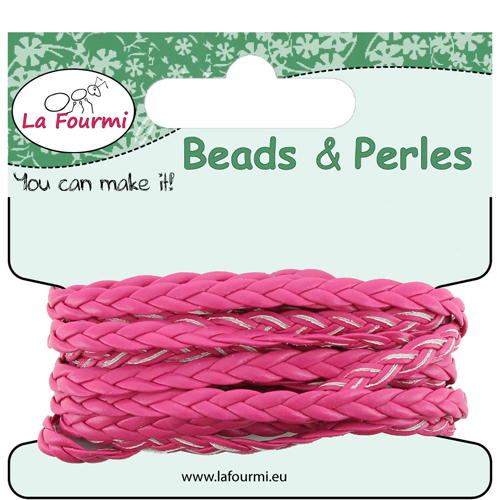 Cordon en coton ciré tressé plat - 5 mm x 3 m - Fuchsia