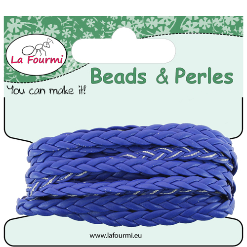 Cordon en coton ciré tressé plat - 5 mm x 3 m - Bleu moyen