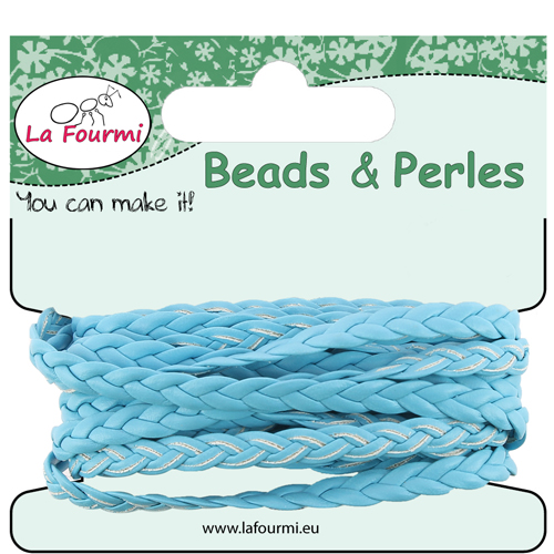 Cordon en coton ciré tressé plat - 5 mm x 3 m - Turquoise