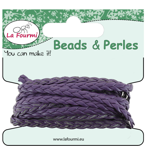 Cordon en coton ciré tressé plat - 5 mm x 3 m - Mauve