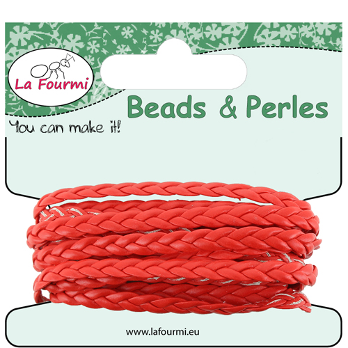Cordon en coton ciré tressé plat - 5 mm x 3 m - Rouge