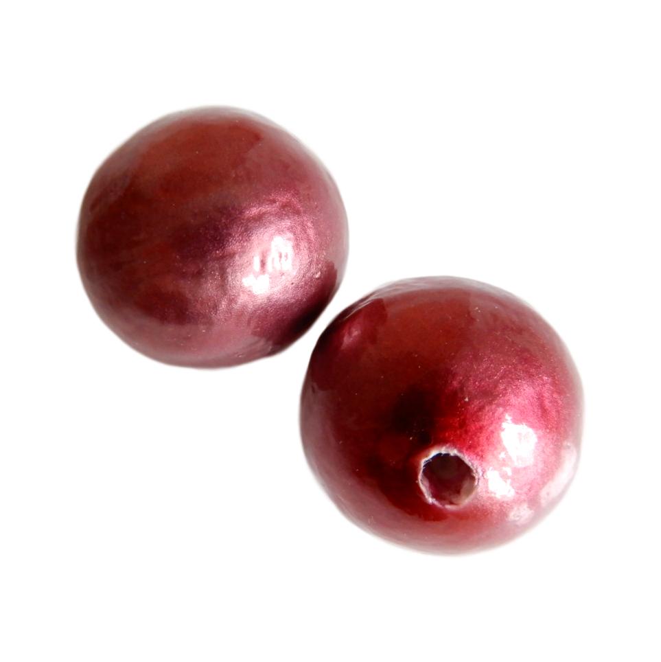 Perle en papier eco - Boule - 20 mm - Fuchsia nacré - 2 pièces