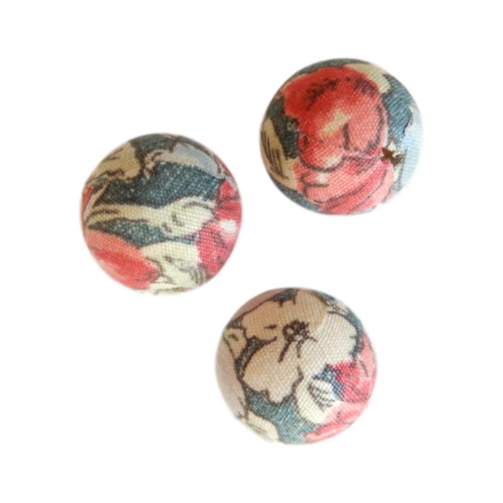 Perle en tissu - Boule - 14 mm - Trou 2 mm - Teintes rouge-vert-gris - 5 pièces - Rayher