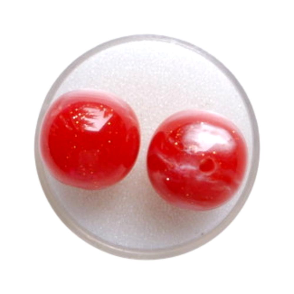 Perle en cœur de palmier - Boule - 16 mm - Rouge marbré scintillant - 3 pièces