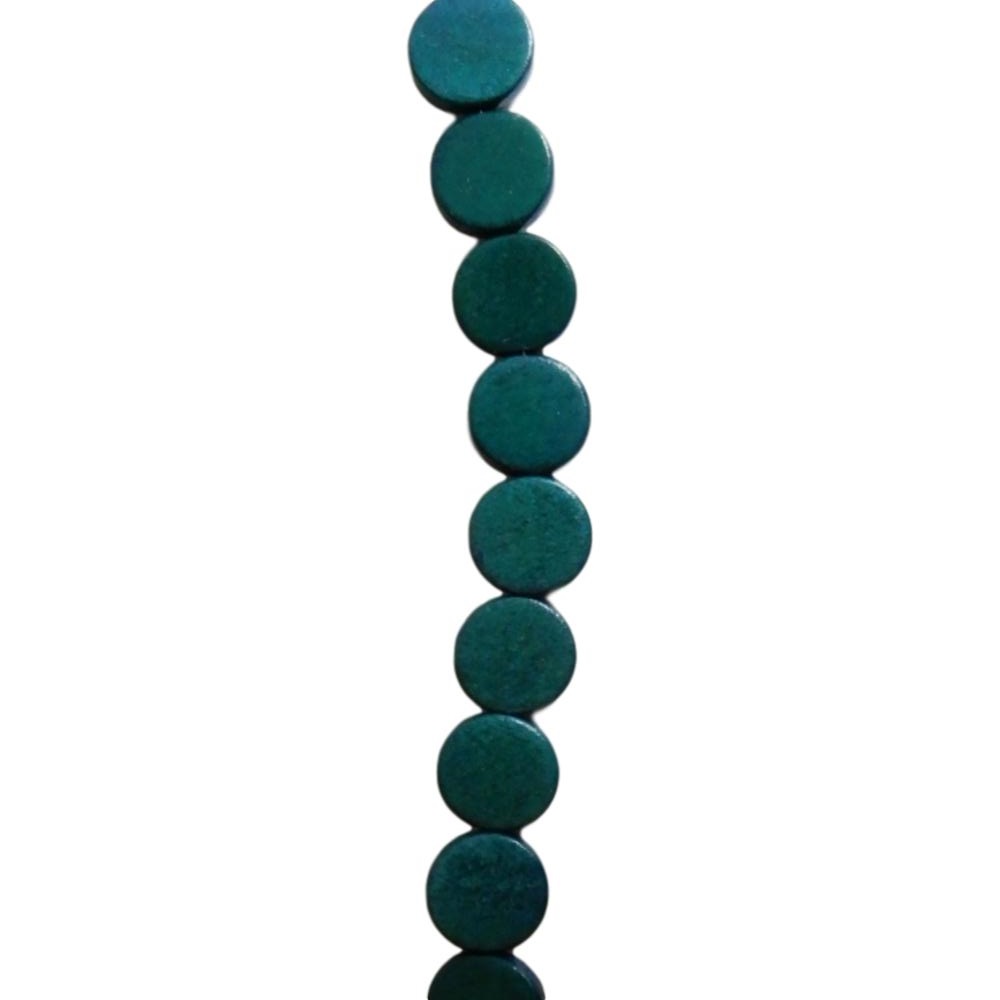 Perle en bois - Rond plat - 5 x 15 mm - Vert foncé - 15 pièces