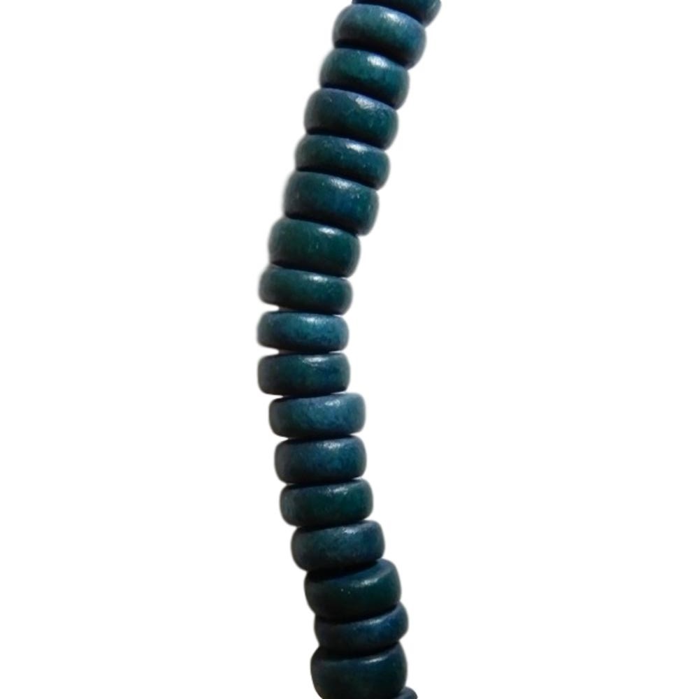 Perle en bois - Rondelle - 8 x 4 mm - Vert foncé - 25 pièces
