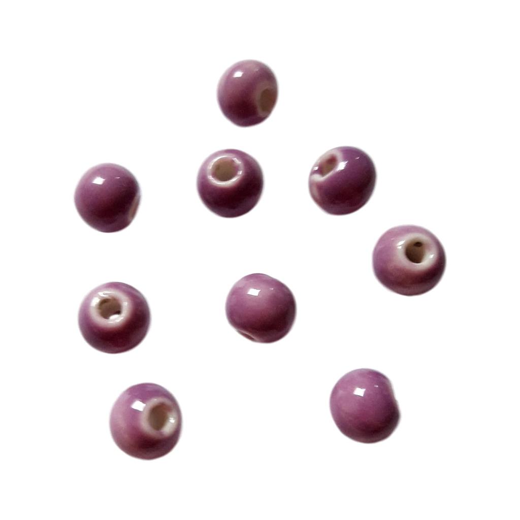 Perle en céramique - Boule - 8 mm - Mauve - 10 pièces
