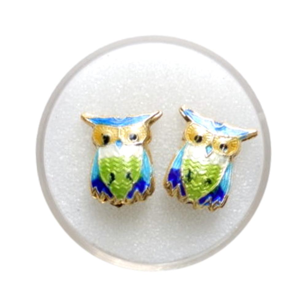 Perle cloisonnée - Hibou - 15 x 11 mm - Bleu/jaune/vert//or - 3 pièces