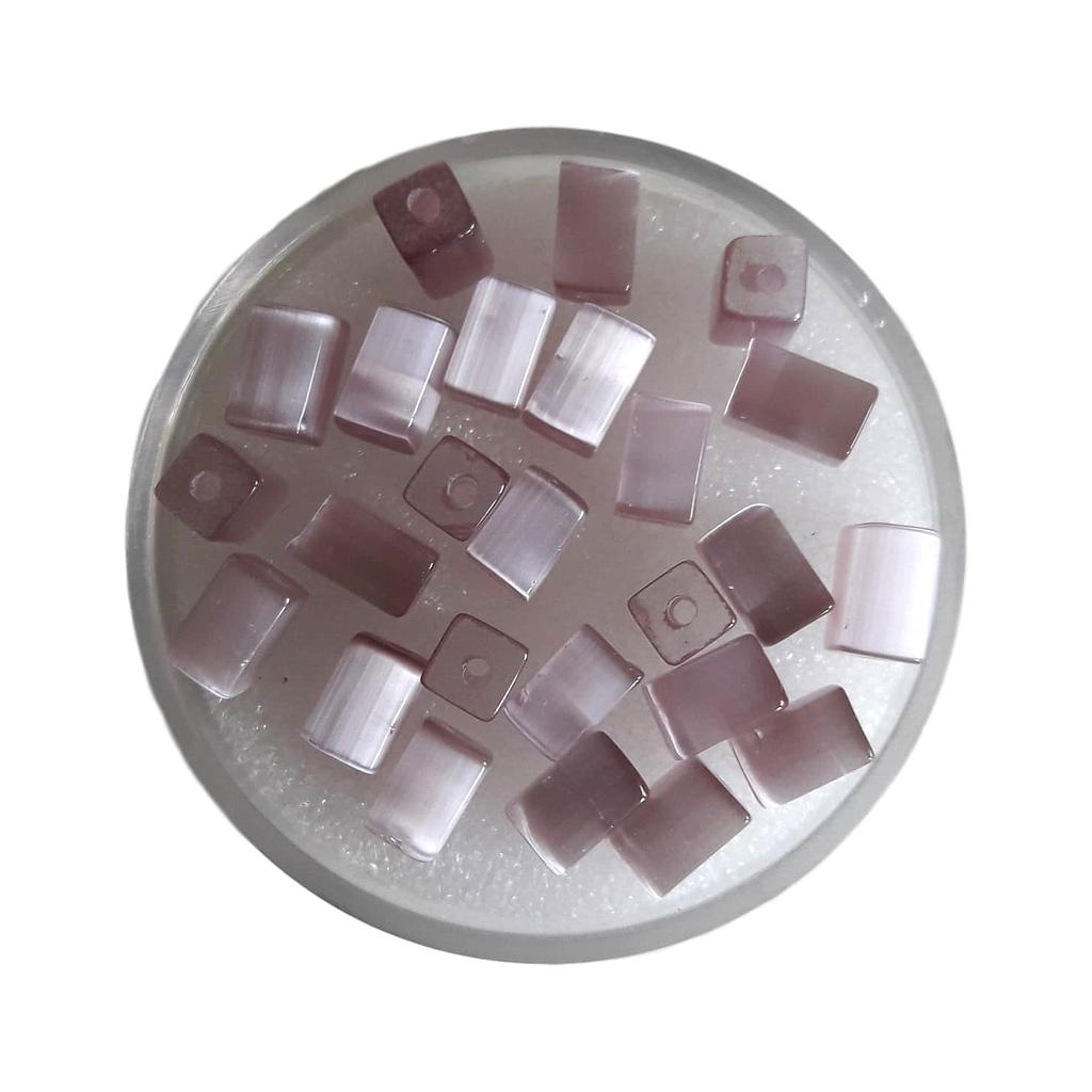Perle en verre - Oeil de chat - Tube carré - 6 x 4 mm - Lilas - 20 pièces