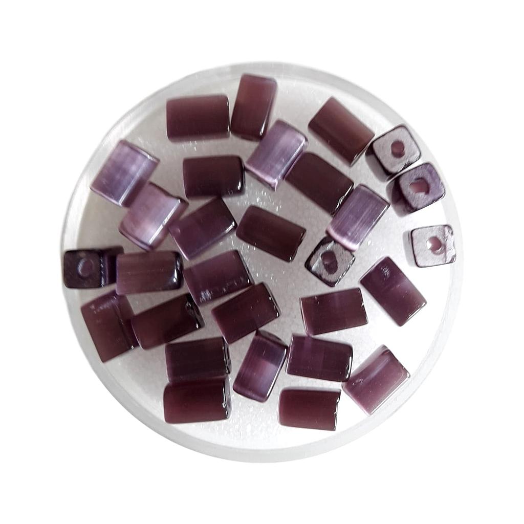 Perle en verre - Oeil de chat - Tube carré - 6 x 4 mm - Violet - 20 pièces