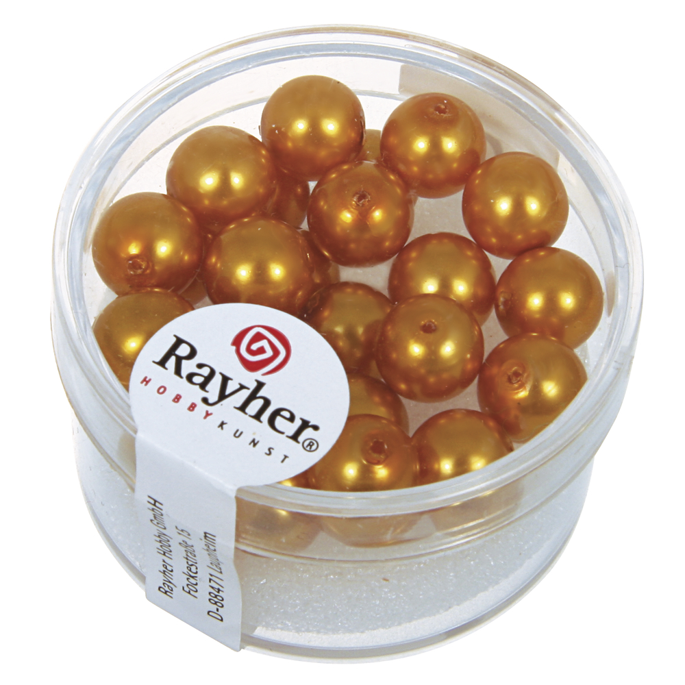 Boules en verre Renaissance - 8 mm - Nacrées - Jaune d'or - Boîte 30 pièces