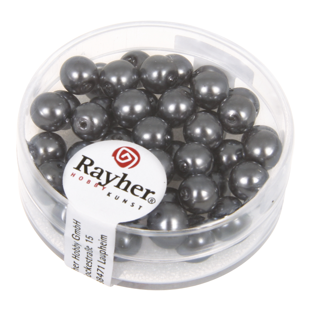 Boules en verre Renaissance - 6 mm - Nacrées - Anthracite - Boîte 55 pièces - Rayher
