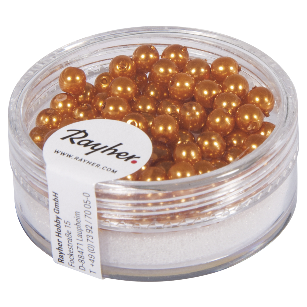 Boules en verre Renaissance - 4 mm - Nacrées - Jaune d'or - Boîte 100 pièces - Rayher