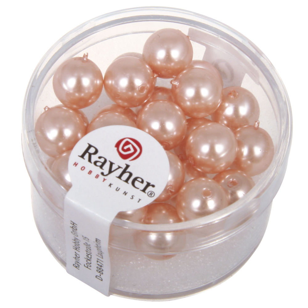 Boules en verre Renaissance - 8 mm - Nacrées - Rose coquille - Boîte 30 pièces