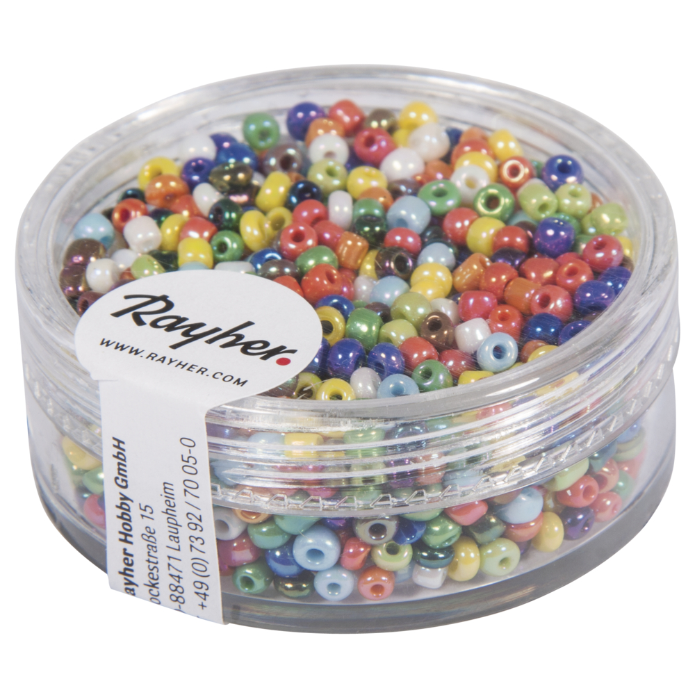 Rocailles - 2 mm ø - Opaques lustrées - Assorties - Boîte 17 gr