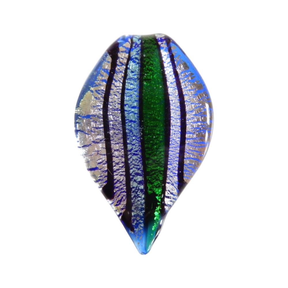 Feuille en verre - 55 x 33 mm - Feuille d'argent sur fond bleu - Motifs bleus/verts/noirs