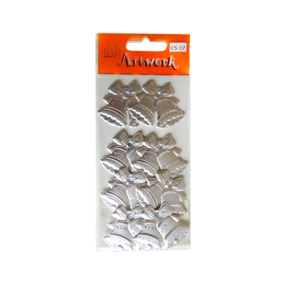 Sticker Art-Work Artoz - Handmade - Cloche argentée avec ruban et strass - 3,5 cm - Pq 6 pièces