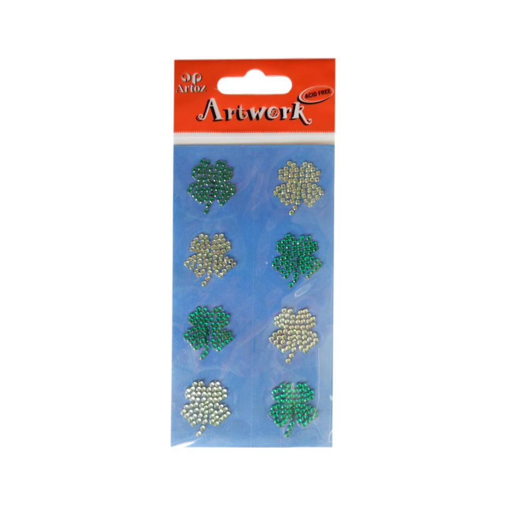Sticker Art-Work Artoz - Handmade - Trèfles à quatre feuilles en strass vert - 2 cm - Pq 8 pièces