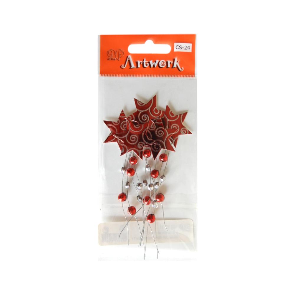 Sticker Art-Work Artoz - Handmade - Etoile rouge et argent avec perles rouges et argent - Etoile seule 3 cm - Pq 5 pièces