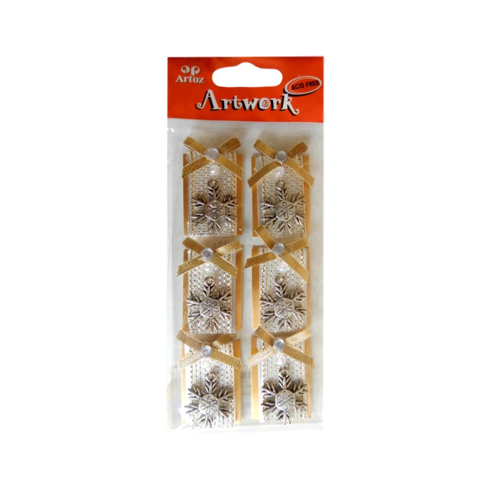 Sticker Art-Work Artoz - Handmade - Breloque flocon avec noeud et perle - 4 cm - Pq 6 pièces