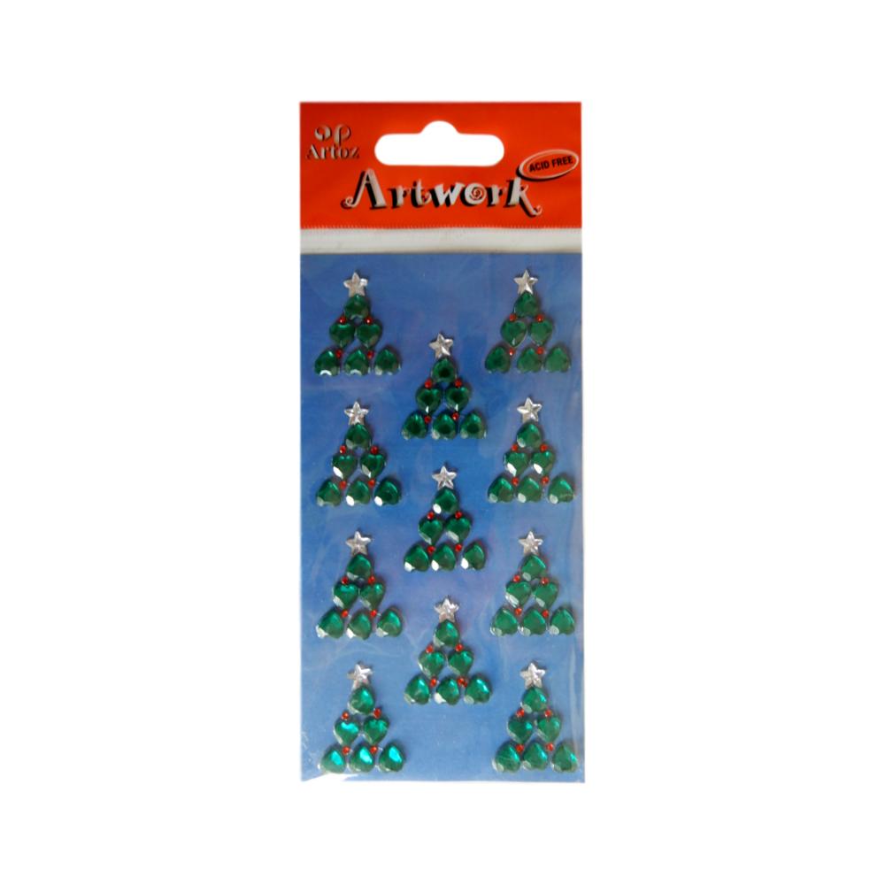 Sticker Art-Work Artoz - Handmade - Sapins en strass - 2,5 cm - Pq 11 pièces