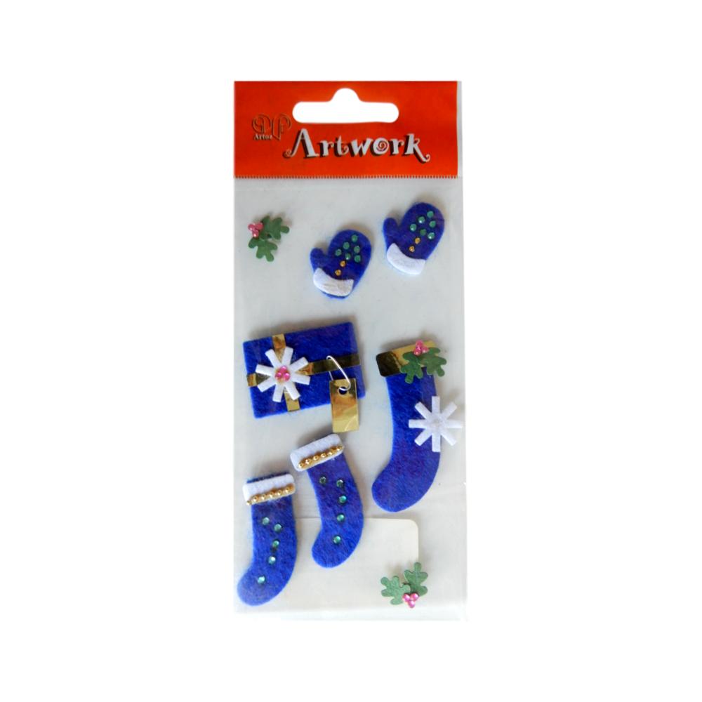 Sticker Art-Work Artoz - Handmade - Set chaussettes/moufles en feutrine - Bleu - De 1,5 à 5 cm - Pq 8 pièces