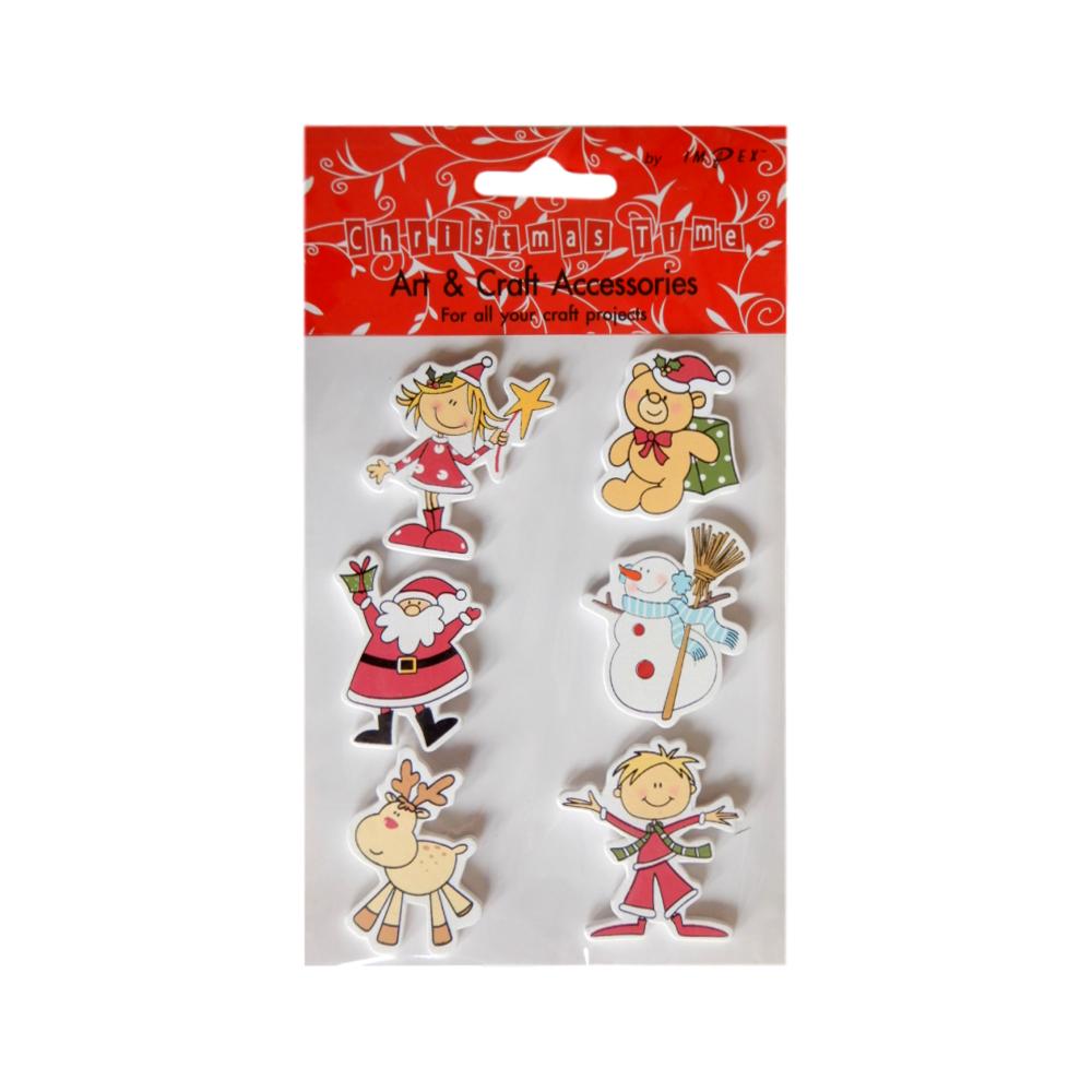 Petits sujets en bois avec pastille autocollante - Noël - De 3,5 à 4,5 cm - Set 6 pièces