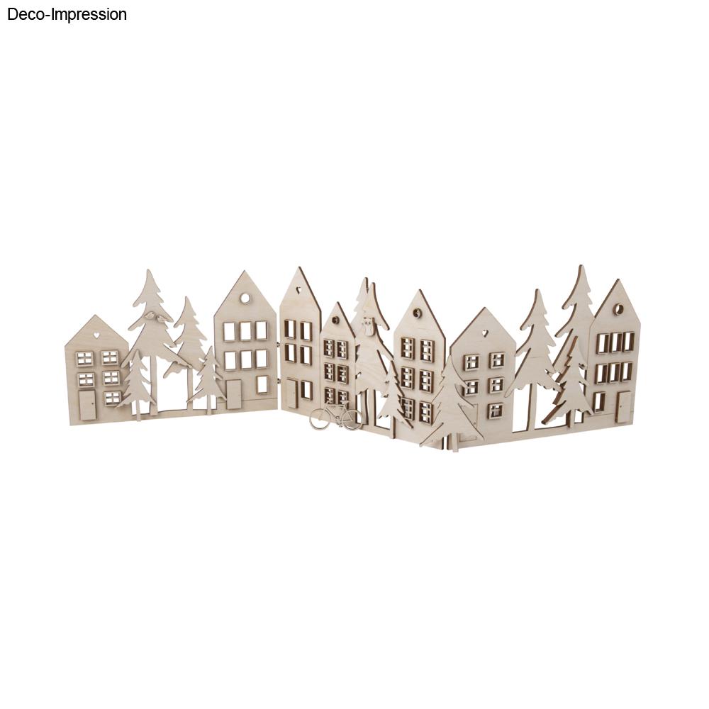 Maisons décoratives en bois - FSC Mix Credit - Nature - 3 x 19,5 x 14 cm - 64 pièces - Boîte 1 kit - Rayher
