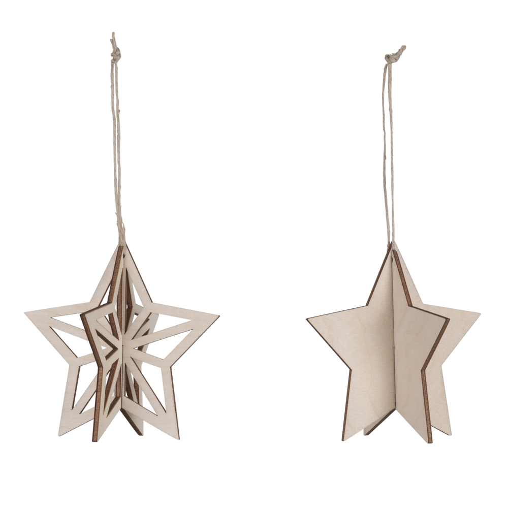 Déco en bois 3D - Etoiles - Mix Credit - 10 cm ø - Nature - Assorties + cordon 0,5 m. - Sct.-LS 2 pièces - Rayher