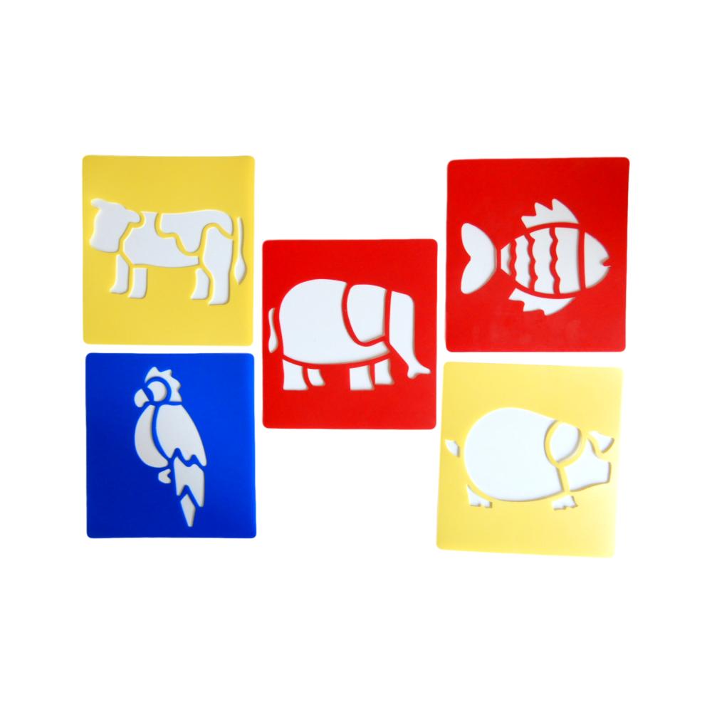 Set de pochoirs semi rigide - Animaux - 15 x 14 cm - 5 pièces