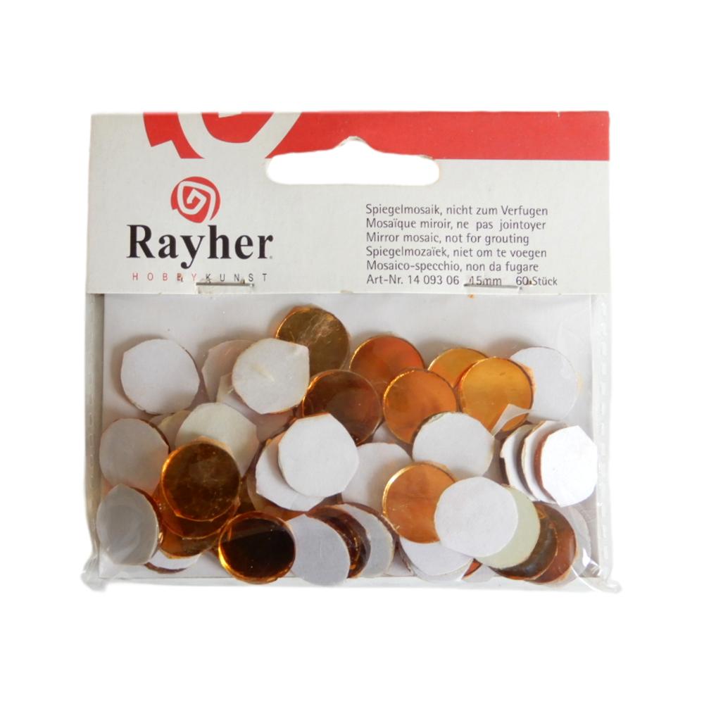 Mosaïque miroir - 15 mm ø - Autocollant - Or (fort orange) - 60 pièces - Rayher