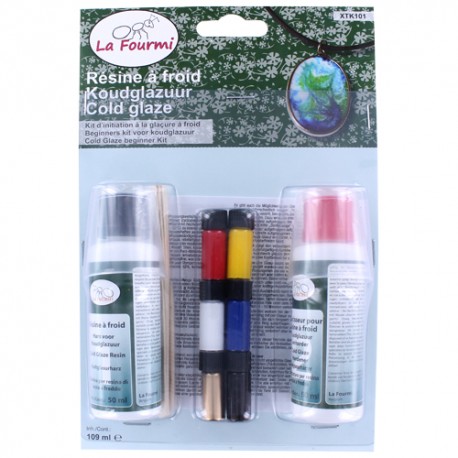 Résine de glaçure à froid 2 composants + 6 colorants - Résine 50 ml + durcisseur 50 ml - La Fourmi