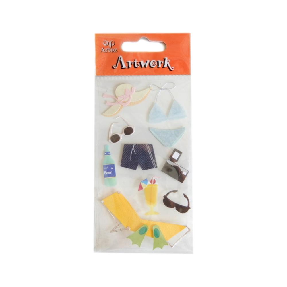 Autocollant 3D Art-Work - De 2,5 à 3,5 cm - Assortis - Feuillage d'été - Pq 13 pièces
