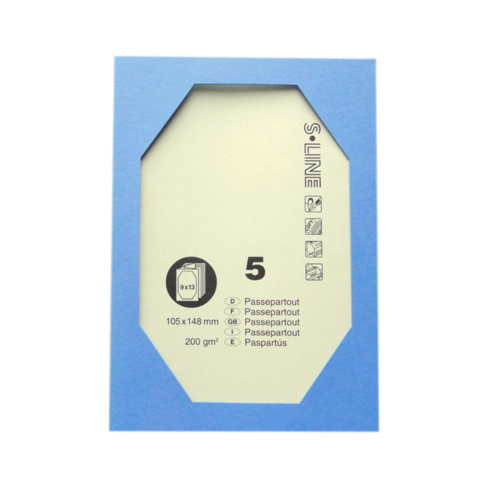 Passepartout A6 S-Line - 105 x 148 mm - Fenêtre octogonale 9 x 13 cm - 200 g/m² - Bleu iris - 5 pièces.