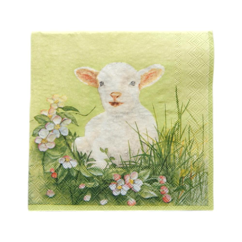 Serviette en papier - 33 cm - 1 motif répété 4 x - Agneau - 5 pièces