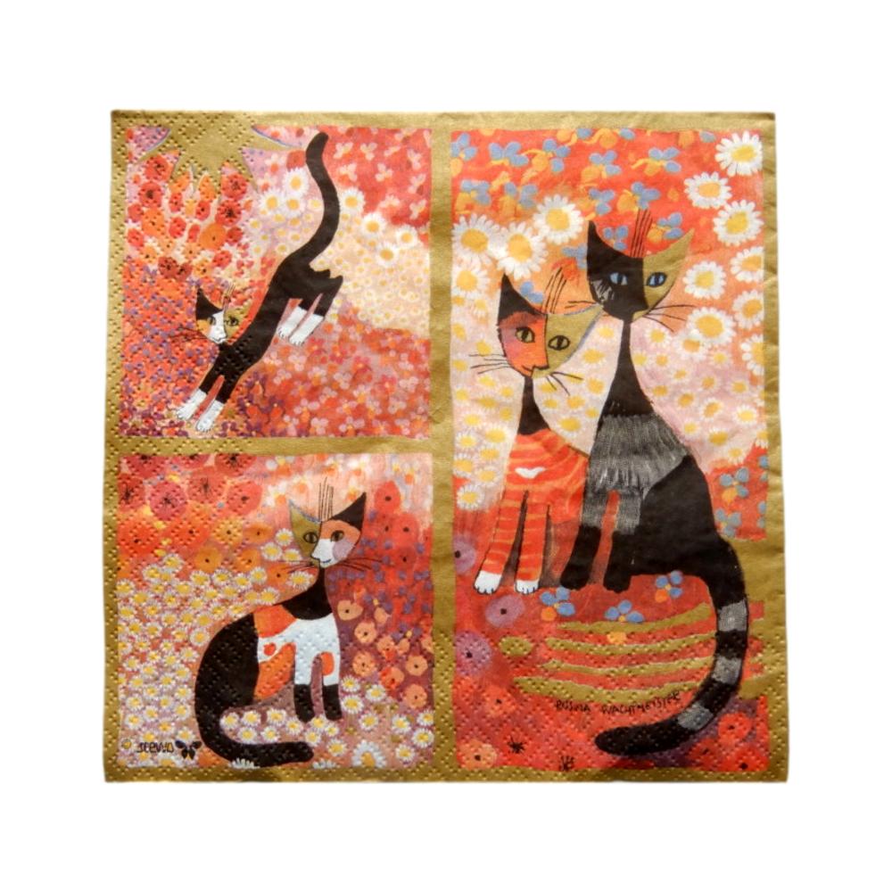 Serviette en papier - 33 cm - 1 motif répété 4 x - Chats - 5 pièces