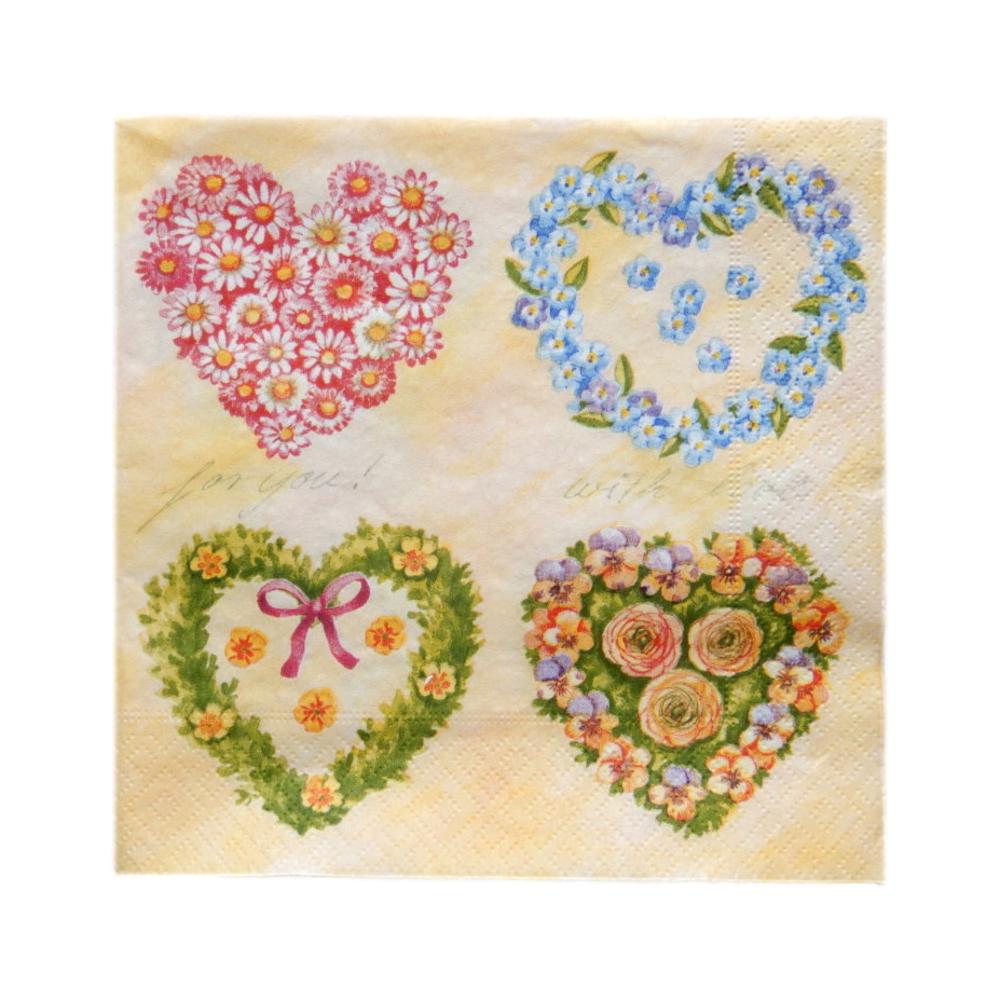Serviette en papier - 33 cm - 1 motif répété 4 x - Coeurs de fleurs - 5 pièces