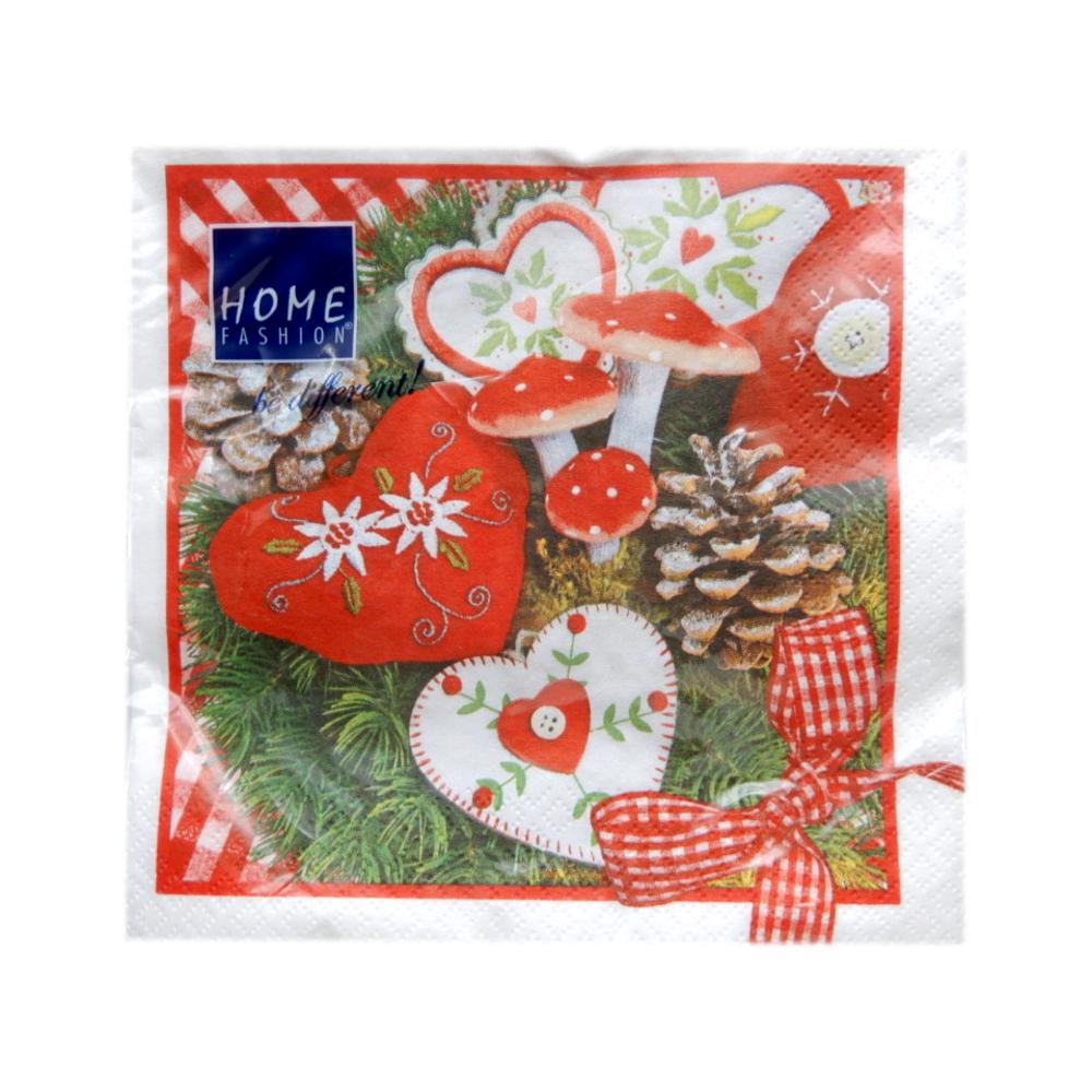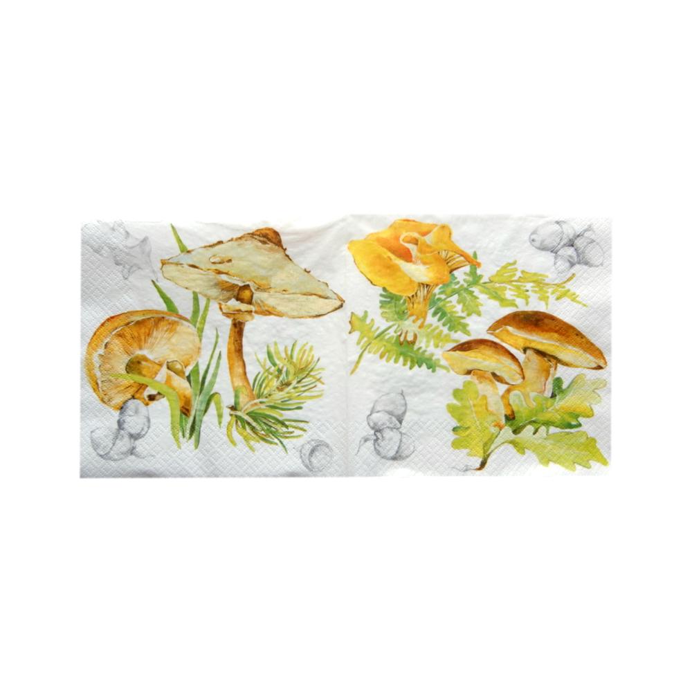 Serviette en papier - 33 cm - 1 motif répété 2 x - Champignons - 5 pièces