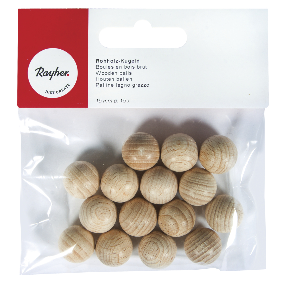 Boule en bois brut - Rayher - Non-percée - 15 mm - 15 pièces