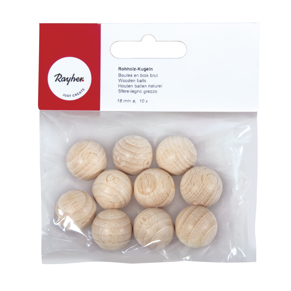 Boule en bois brut - Rayher - Non-percée - 18 mm - 10 pièces