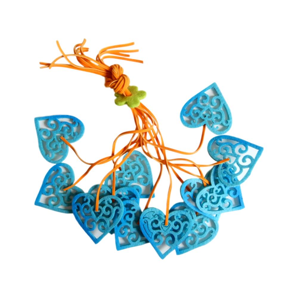 Floche de 12 cœurs ajourés en feutre - 5 cm - Turquoise