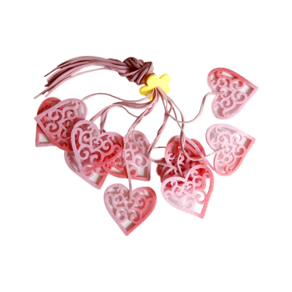 Floche de 12 cœurs ajourés en feutre - 5 cm - Rose