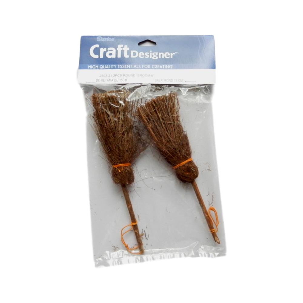 Balai de sorcière rond - 15 cm - Nature (brun foncé) - Sachet 2 pièces